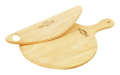 - Handsome pizza peel and cutter set made of plantation grown hardwood